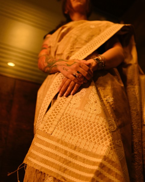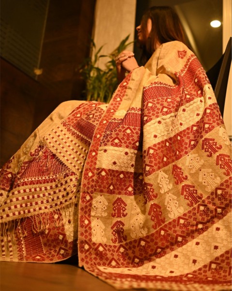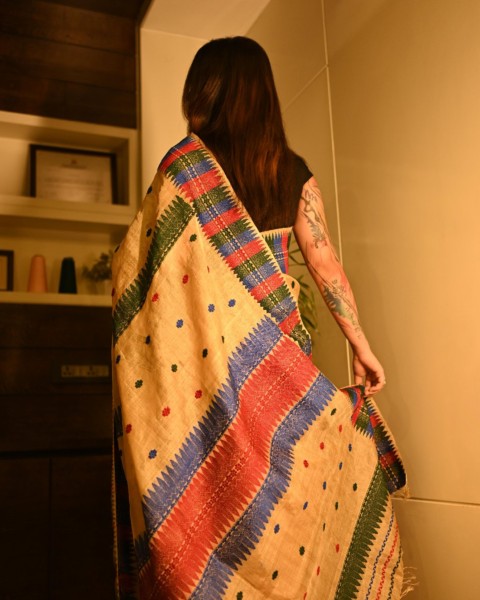 "Orlina" is Muga Silk Yarn with high resilience and durability. It is a natural and 100% chemical free Silk Yarn. It is an heirloom fabric..